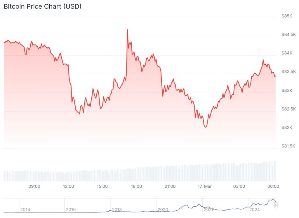 BTC is currently trading at $83,458.21, reflecting a 1.07% decline in the past 24 hours, though it remains 1.03% higher over the past week.