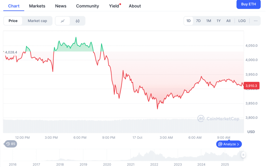 Meanwhile, Ethereum is trading at $3,918.65, down by 2.22% in the last 24 hours. The global market cap is at $473.03 billion. The 24-hour trading volume is still up by 2.64%.