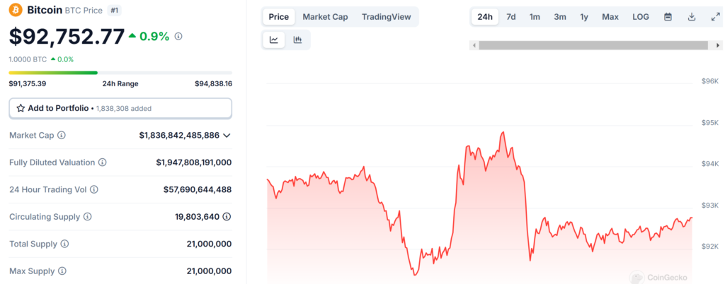 The broader market context provides crucial perspective on this event. Currently, Bitcoin (BTC) is trading at $92,670.14, with a substantial 24-hour trading volume of $50,682,249,275.