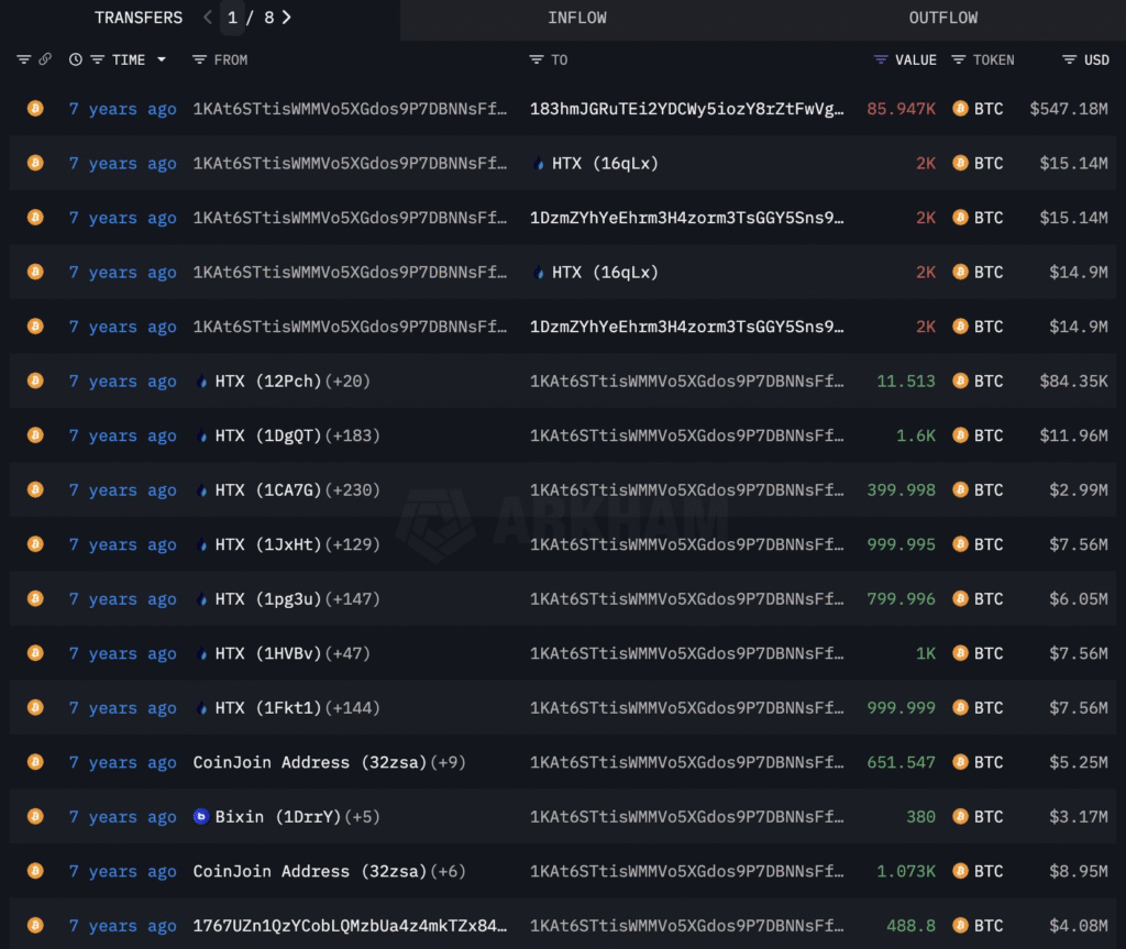 On-chain data has tracked the address that transferred a staggering 100,784 BTC, approximately worth $642 million at the time of transfer 7 years ago.