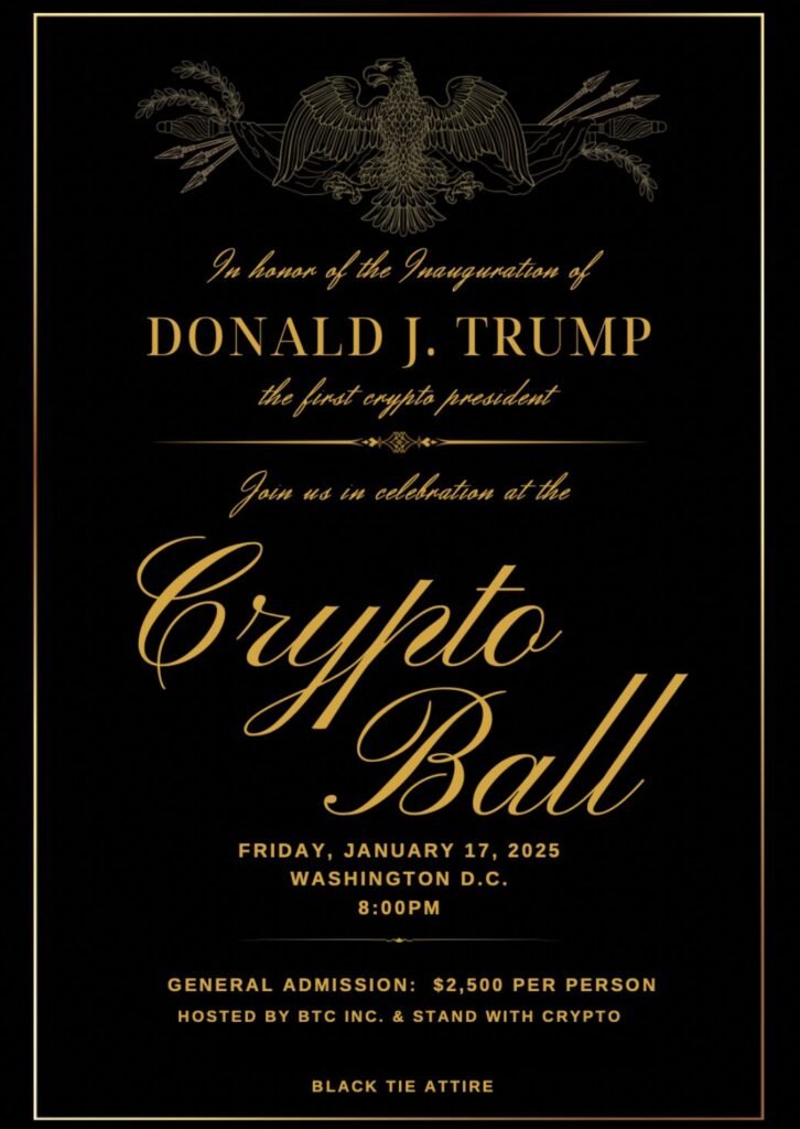 The crypto community has decided to host an inaugural cryptocurrency ball honoring Donald Trump and J.D. Vance’s inauguration. The ball is scheduled for Friday, January 17 in Washington, D.C.