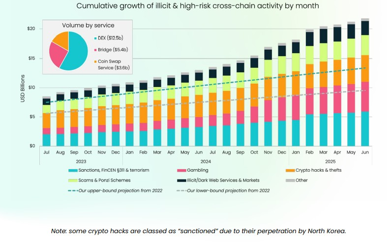 A staggering $21.8 billion in illicit and high-risk cryptocurrency transactions have moved through cross-chain bridges.