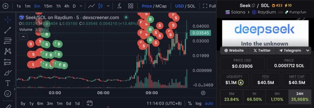 The token’s connection to DeepSeek, an off-chain AI large model project dubbed as “killing Nvidia,” has significantly contributed to its market narrative and appeal, creating a compelling story for traders and investors alike.