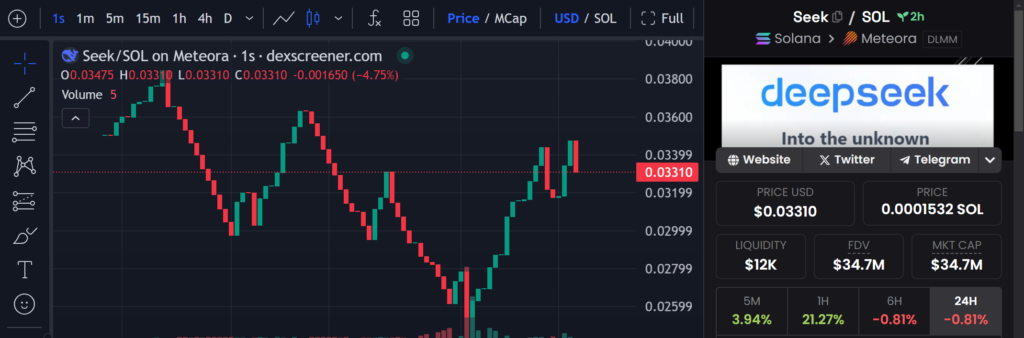 The $SEEK AI token has established itself as a noteworthy player in the cryptocurrency market, achieving a market capitalization and fully diluted valuation of $34.7 million.
