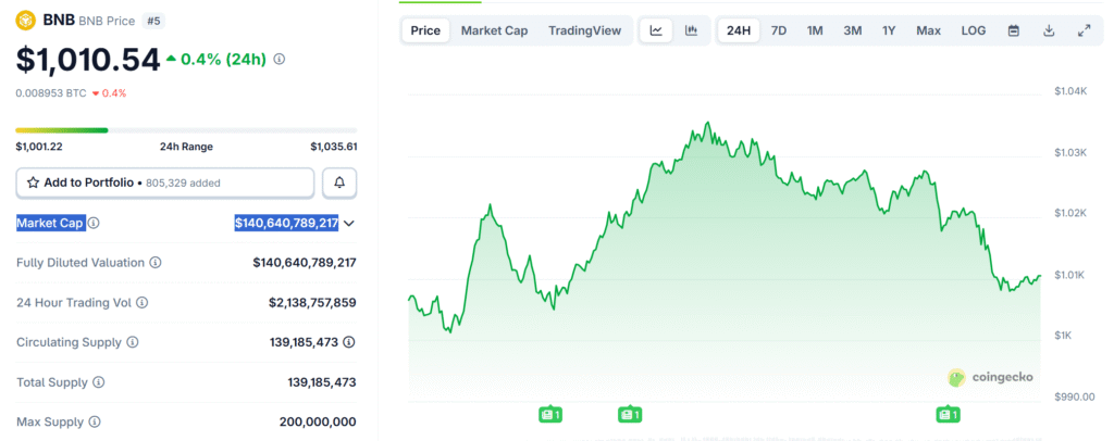 The Binance Coin has a market cap of over $140 billion, and BNB is also one of the largest digital currencies in the world.