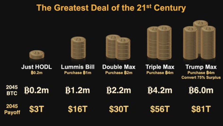 Saylor’s “Trump Max” plan suggests that the government acquire 4 million BTC, which represents nearly 20% of the total 21 million Bitcoin that will ever exist.