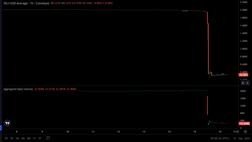 The massive downturn wiped out significant investor capital and resulted in widespread market instability, particularly affecting those with leveraged long positions on $ZKJ.