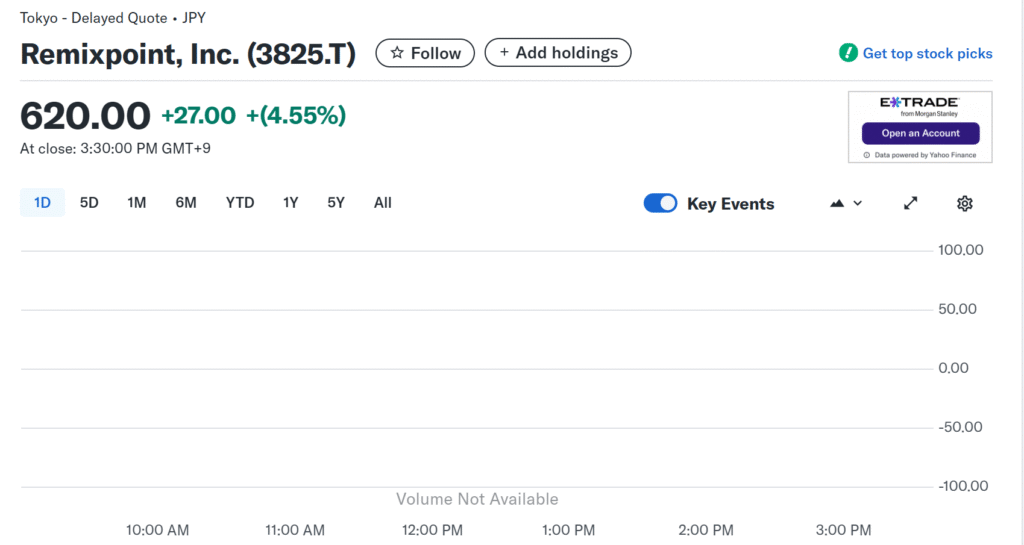 The bold move did not go unnoticed by the market. Remixpoint’s stock price rose by 4.55% following the announcement, closing at 620 yen per share.