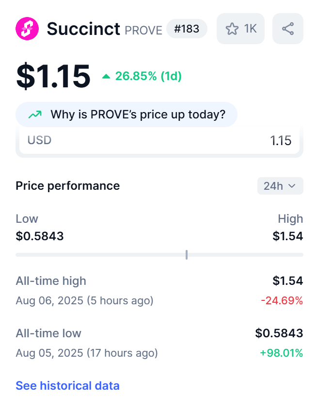 Succinct ($PROVE) Token Surges To $1.54 Billion Market Cap Amid Listing On All Major Crypto Exchanges