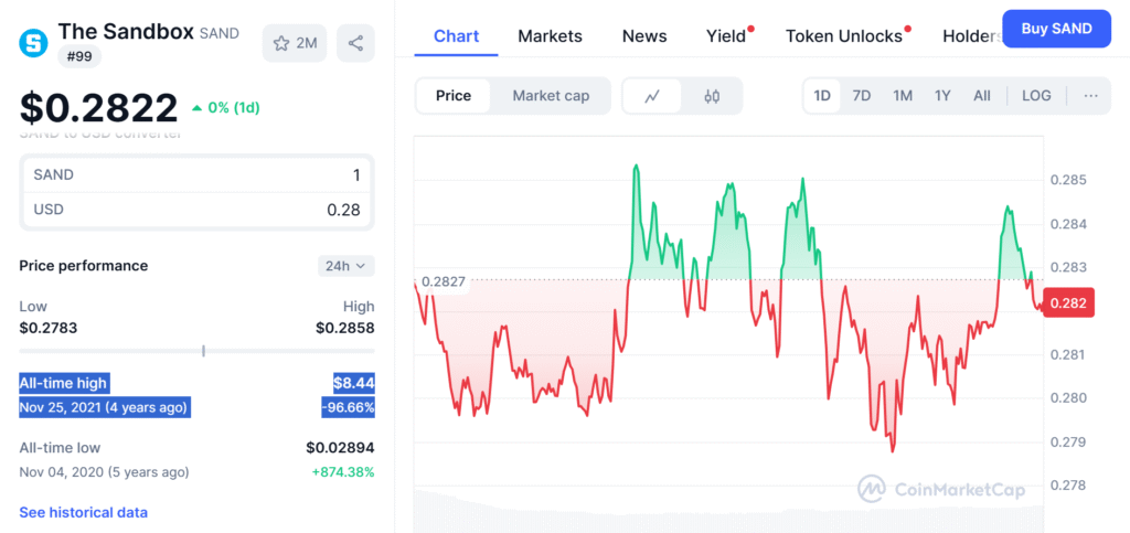 These leadership changes come at a critical moment for The Sandbox metaverse project as its token $SAND is currently trading at $0.2820, down 96.66% from its ATH. The token has a current market cap of $726.08M.