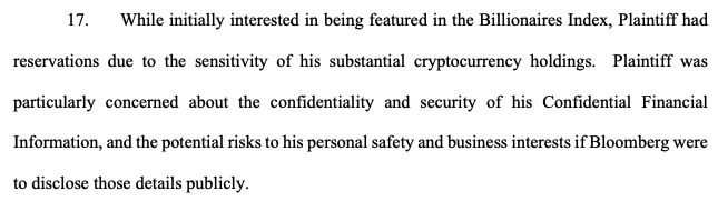 In order to be included, Bloomberg sought verification of his assets, and this included details of cryptocurrency holdings.