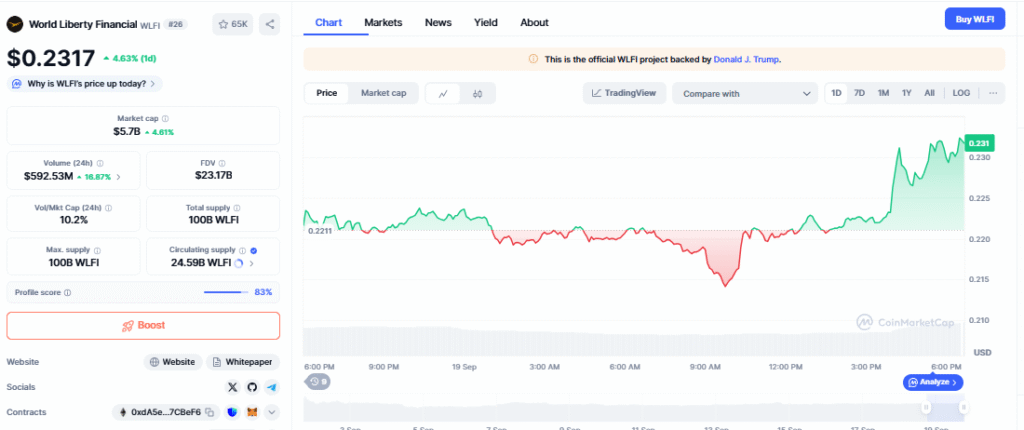 Source: CoinMarketCap WLFI